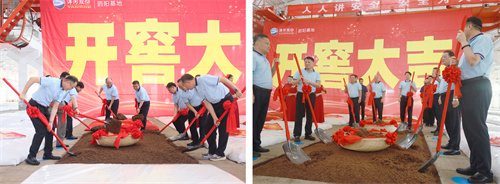 吉时一到,一面“开窖大吉”巨幕从池口上方倏然拉开,郑步军、张德佳邀请市场嘉宾挥锨起醅,在一声声激扬的吉祥话中,基地22800口窖池全面进入头排酒开窖生产阶段。