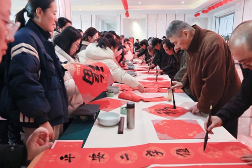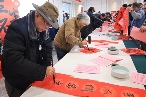 随着蛇年春节脚步临近,活动期间还举办了“文化惠民”活动,江苏省当代艺术创作研究会的文化学者挥毫泼墨,写对联、送福字,为大家送来了新年的祝福。